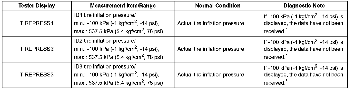 (a) Confirm that the data of tire pressure of all tires are displayed on the intelligent tester screen.
