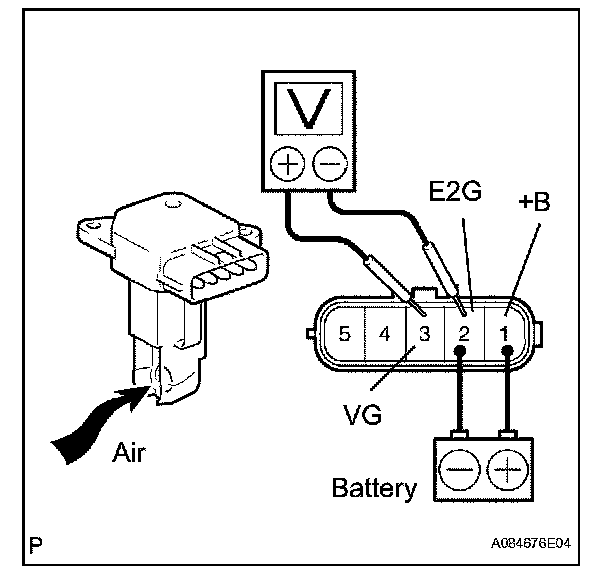 2. Using a voltmeter, connect the positive (+) tester probe to terminal 3 (VG), and negative (-) tester probe to terminal 2 (E2G).