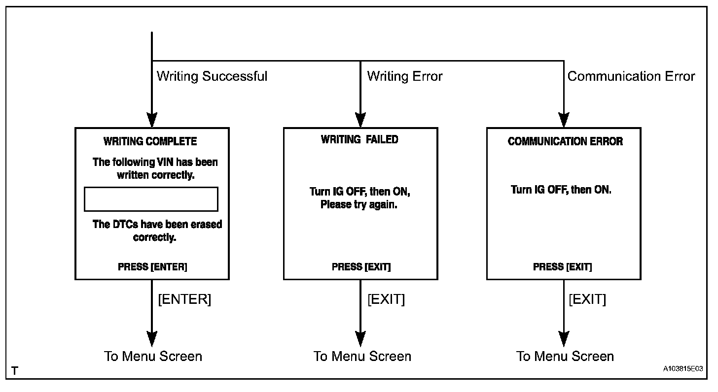 a. The VIN writing process is explained in a flowchart. This process allows the VIN to be input into the ECM. If the ECM is changed, or the 2 VINs do not match, the VIN can be registered, or overwritten in the ECM by following this procedure.