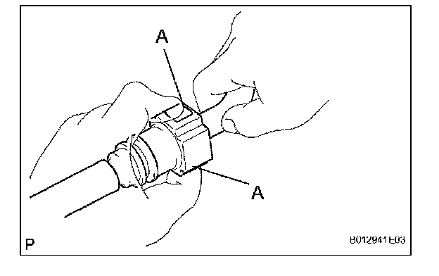 d. Disconnect the fuel tube connector from the fuel pipe by pinching part A with your fingers, as shown in the illustration.