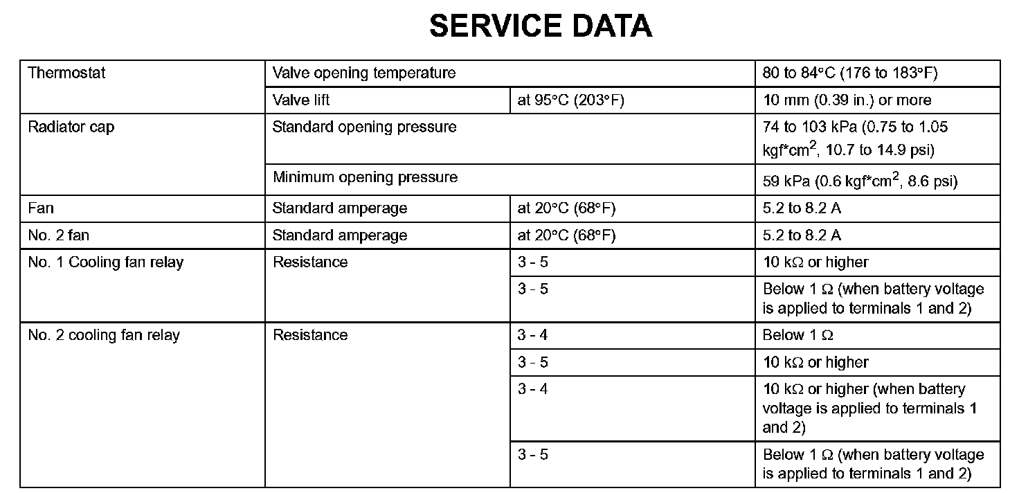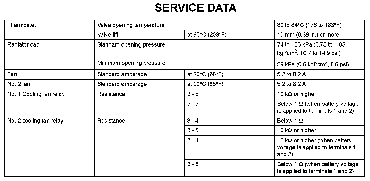 Cooling - Service Data:
