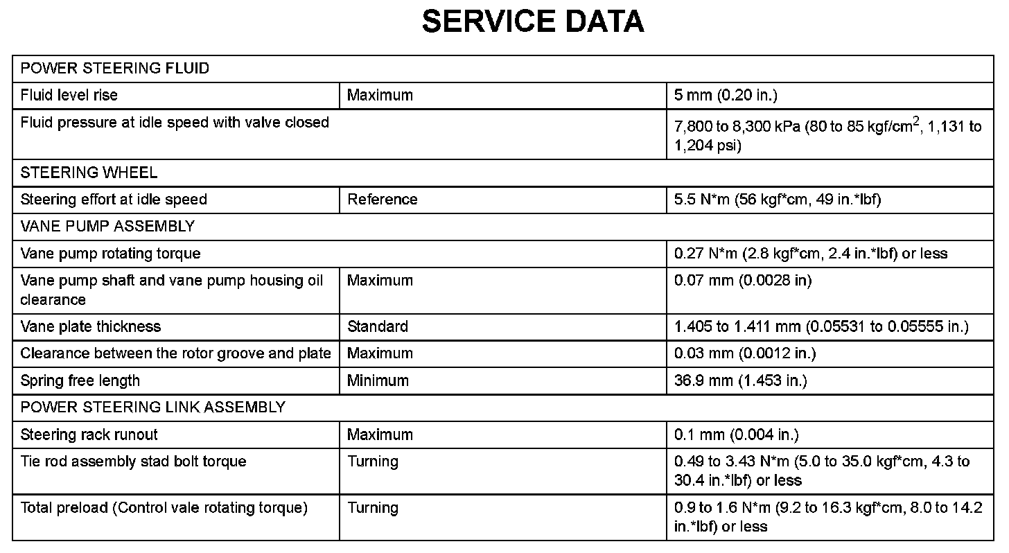 Power Steering - Service Data: