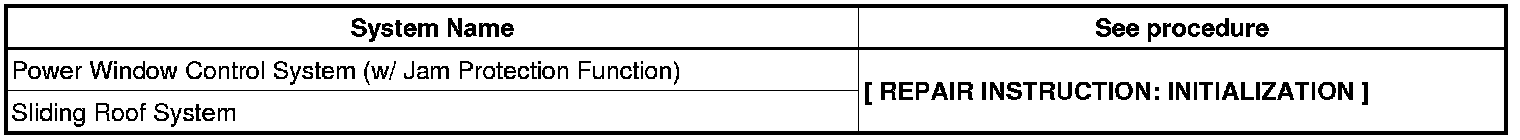 NOTE: When disconnecting the cable from the negative (-) battery terminal, initialize the following systems after the cable is reconnected.