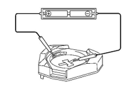 HINT: When a new or non-depleted transmitter battery is not available, connect 2 new 1.5 V batteries in series. Then connect leads to the batteries and use the leads to apply 3 V to the transmitter, as shown in the illustration.