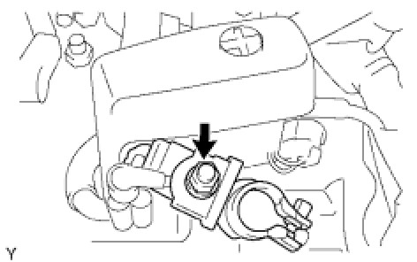 (a) Loosen the 2 nuts and remove the battery clamp.