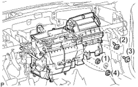 (a) Temporarily tighten the air conditioning radiator with the 2 nuts.