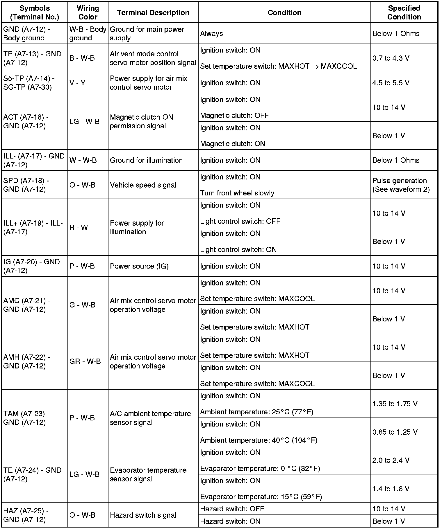 AIR CONDITIONING: AIR CONDITIONING SYSTEM: TERMINALS OF ECU