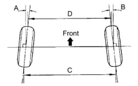 If the toe-in is not within the specified range, inspect the suspension parts and replace them if necessary.