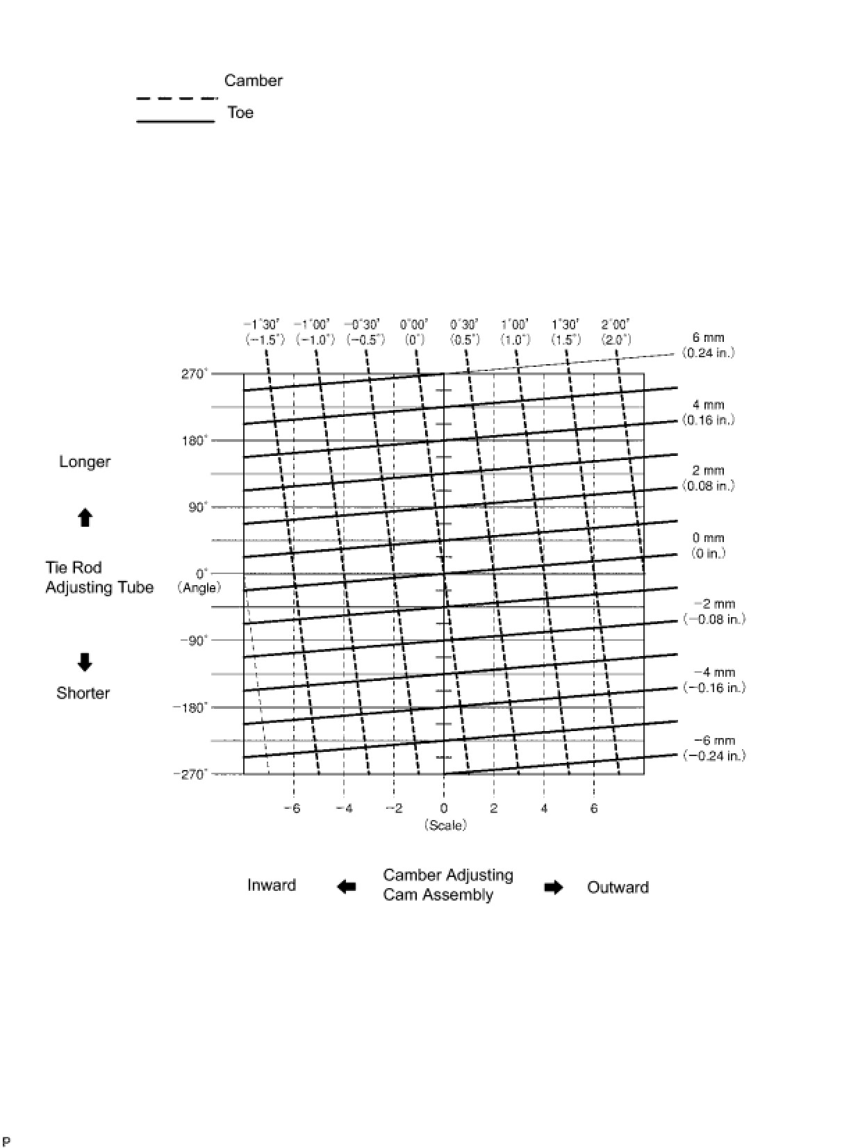 Amount to turn camber adjusting cam assembly (by graduation):