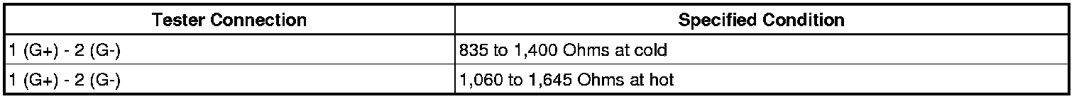 If the result is not as specified, replace the camshaft position sensor.