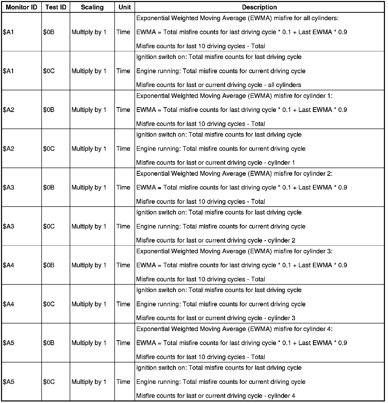 If you use a generic scan tool, multiply the test value by the scaling value listed below.