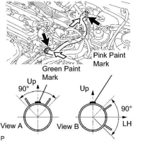 NOTE: Make sure that the paint mark and hose clamp are at the correct angle.