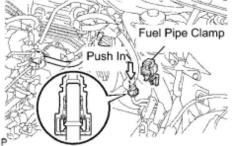 (a) Align the fuel tube connector with the pipe, and then push the fuel tube connector until the retainer makes a "click" sound to connect the fuel tube to the pipe.
