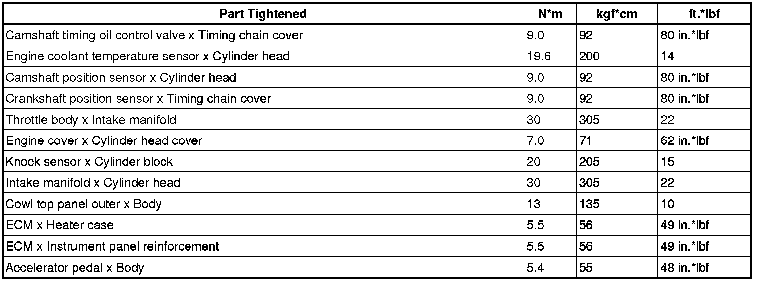 SERVICE SPECIFICATIONS: 2AZ-FE ENGINE CONTROL SYSTEM: TORQUE SPECIFICATIONS