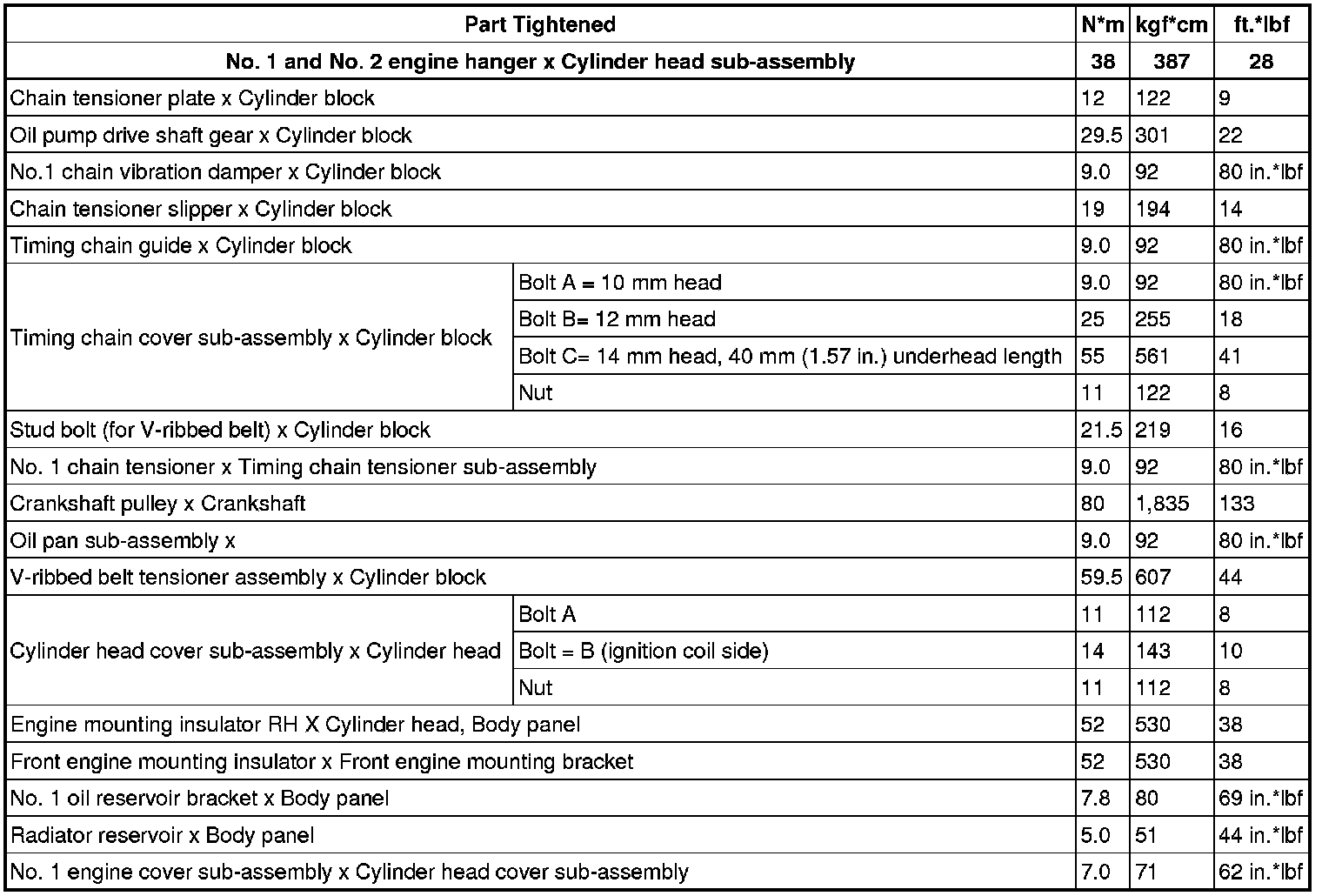 SERVICE SPECIFICATIONS: 2AZ-FE ENGINE MECHANICAL: TORQUE SPECIFICATIONS