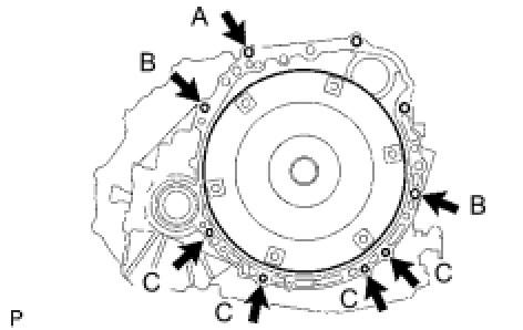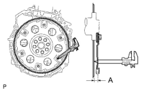 (a) Using a vernier caliper, measure dimension "A" between the transaxle fitting part of the engine and the converter fitting part of the drive plate.