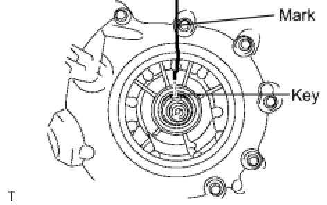 (b) Set the key of the front oil pump drive gear to the top and put a mark on the housing.