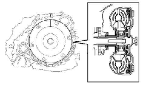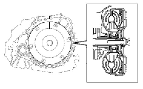 (d) Match the 2 marks on the transaxle case and the torque converter clutch and fit the spline part of the input shaft to the spline part of the turbine runner.