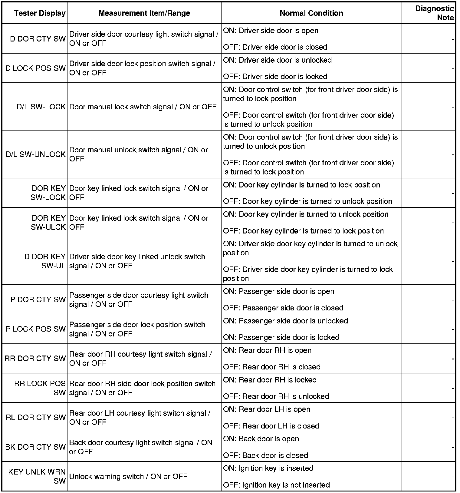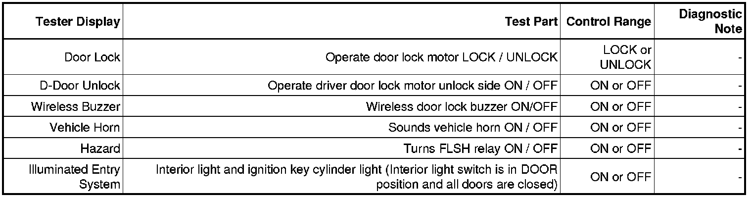 DOOR LOCK: WIRELESS DOOR LOCK CONTROL SYSTEM: DATA LIST / ACTIVE TEST