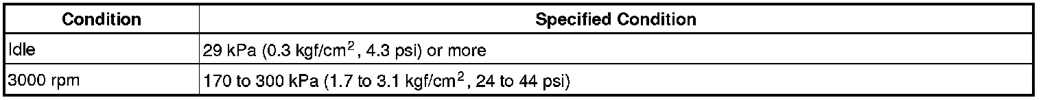 If the oil pressure is not as specified, check the oil pump. Testing and Inspection