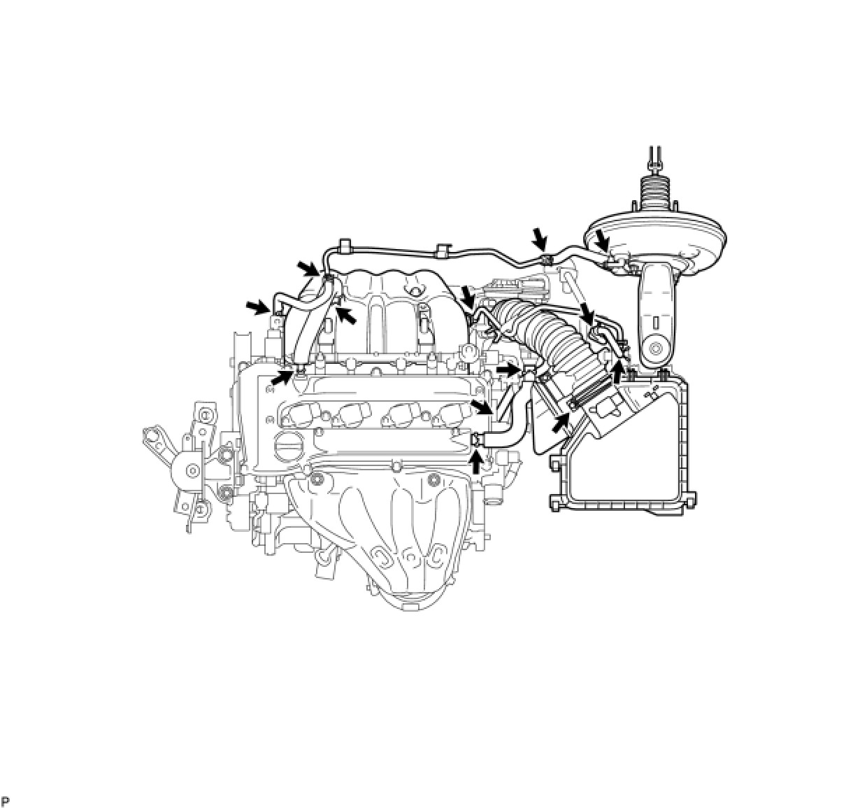 Check that there is no air suction at the points shown in the illustration.