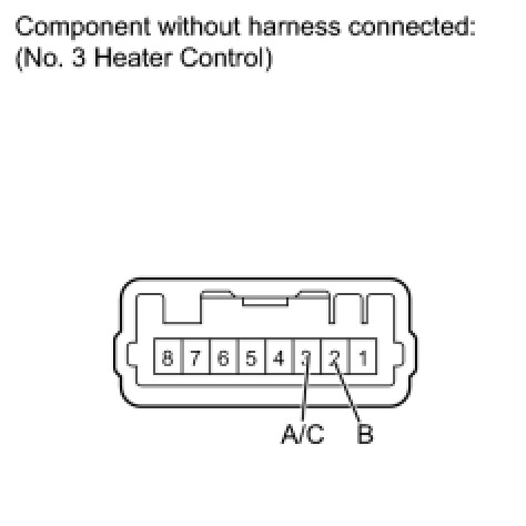 The No. 3 heater control is powered through the HTR-IG fuse. The No. 3 heater control transmits operational signals of each switch to the A/C amplifier.