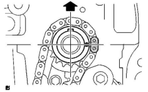 (b) Install the chain onto the crankshaft timing sprocket with the gold or orange mark link aligned with the timing mark on the crankshaft.