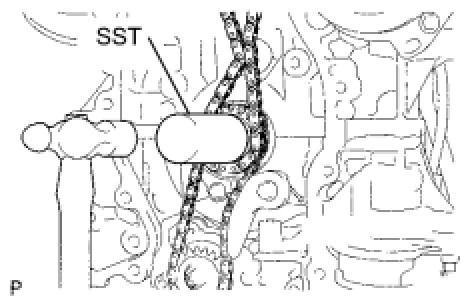 (c) Using SST and a hammer, tap in the crankshaft timing sprocket.