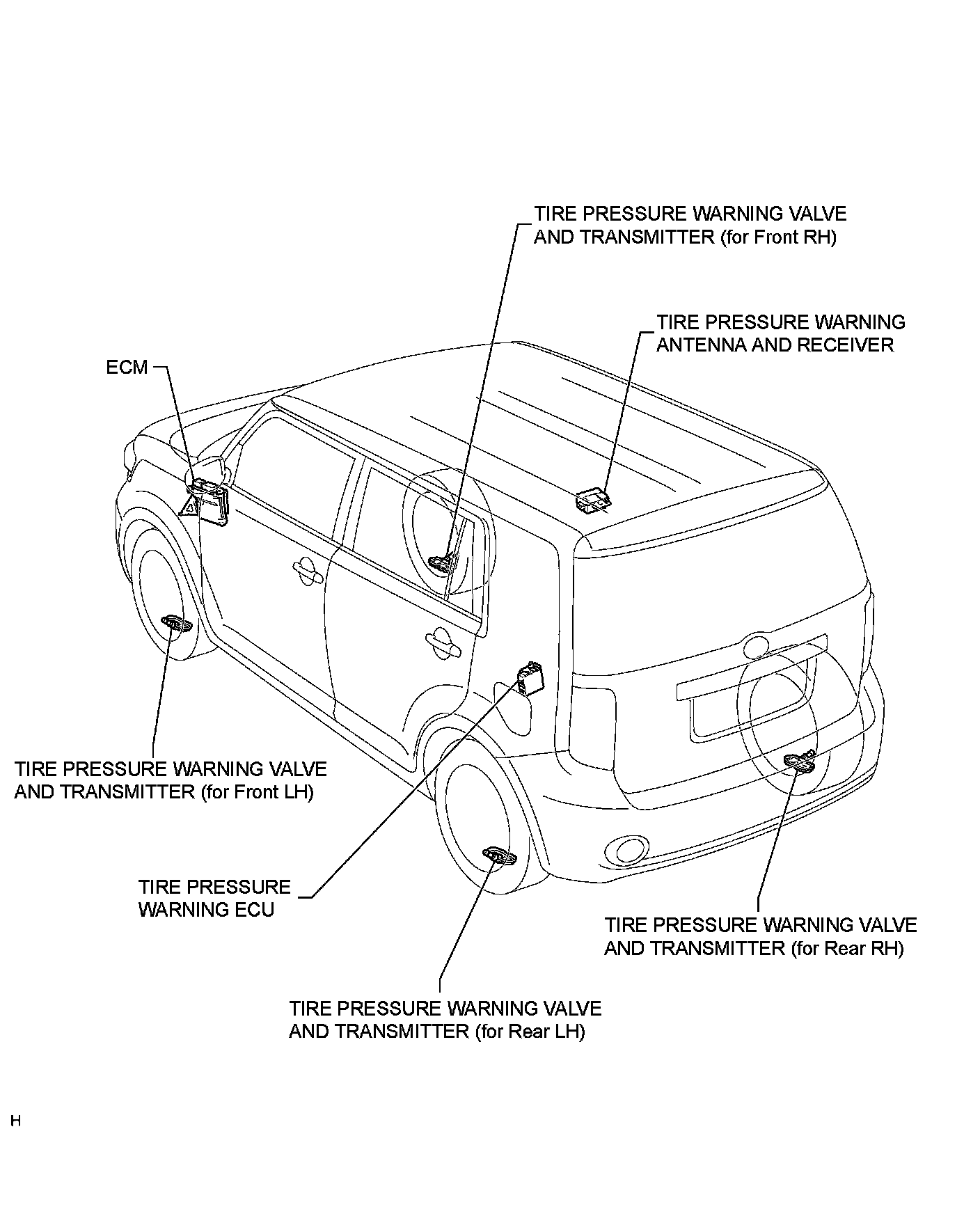 TIRE AND WHEEL: TIRE PRESSURE WARNING SYSTEM: PARTS LOCATION