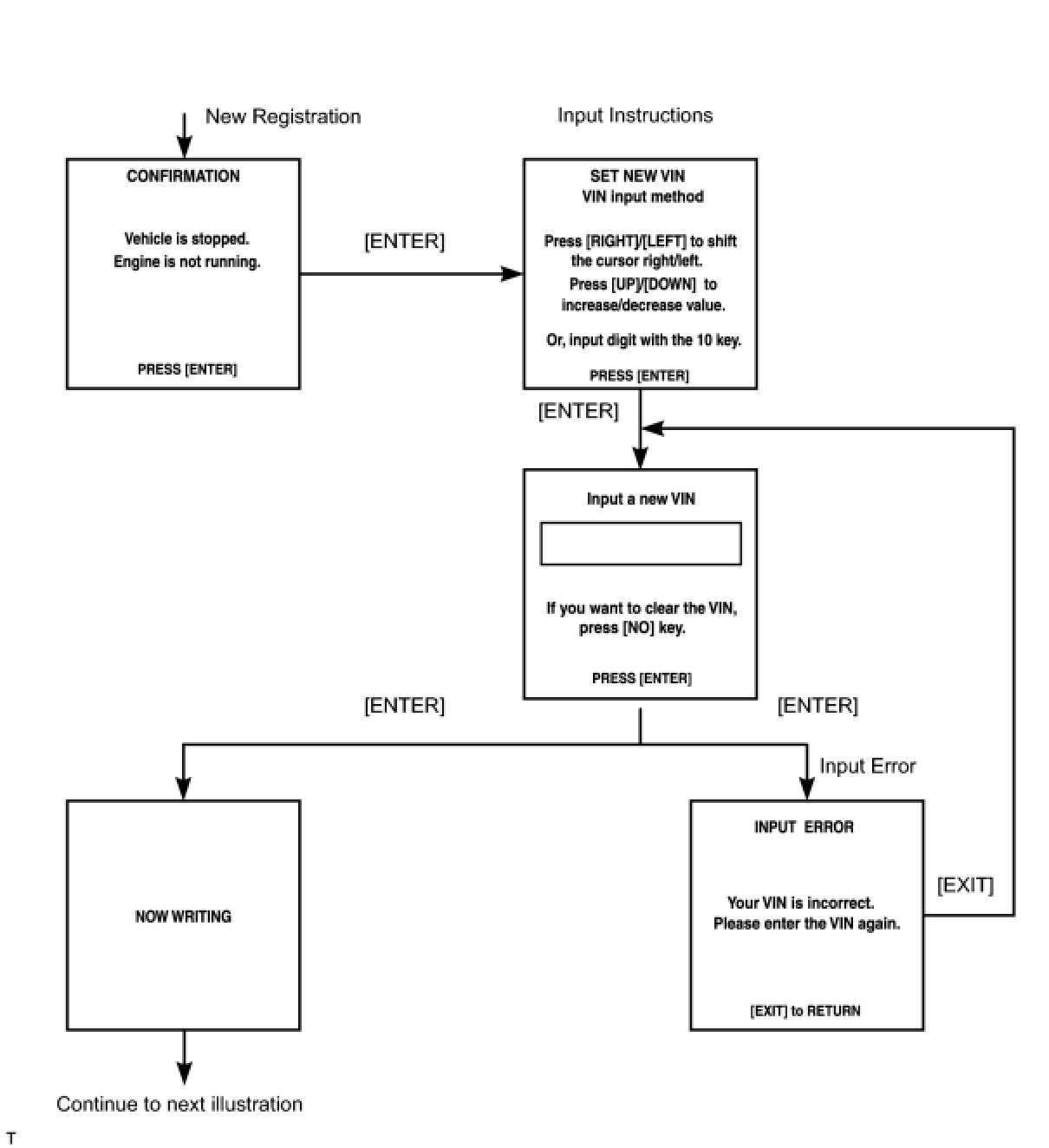 (1) Make sure that the input VIN matches the vehicle VIN after input.