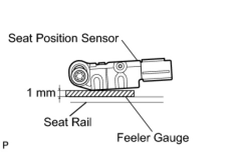 HINT: Maintain a clearance between the seat position airbag sensor and the seat rail of between 0.6 mm (0.023 in.) and 2 mm (0.079 in.).