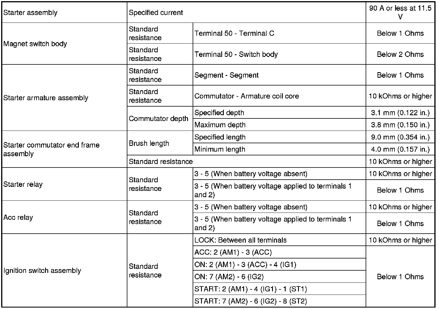SERVICE SPECIFICATIONS: 2AZ-FE STARTING: SERVICE DATA