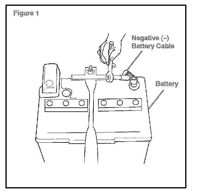 2. Loosen the negative (-) battery terminal of the battery cable so it becomes easier to remove from the negative (-) battery post later (Figure 1).