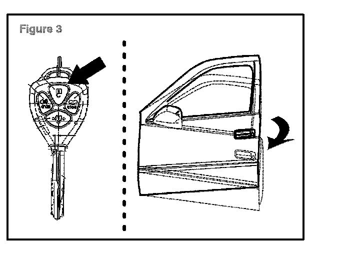 B. Using the remote control, press the unlock button one time. Open and close the driver's door within 30 seconds (Figure 3).