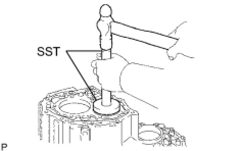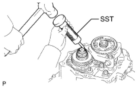 (a) Using SST, tap out the rear bearing from the transaxle case (outer race).