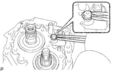 (a) Using a 6 mm hexagon wrench, remove the restrict pin plug from the transaxle case.