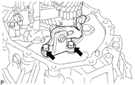 (a) Remove the 2 bolts and arm bracket from the transaxle case.