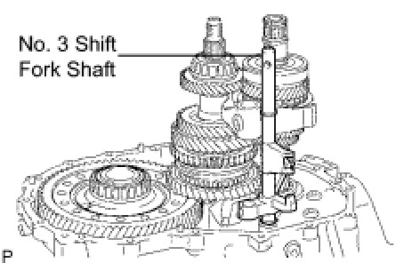 (a) Remove the No. 3 gear shift fork shaft from the transaxle case.