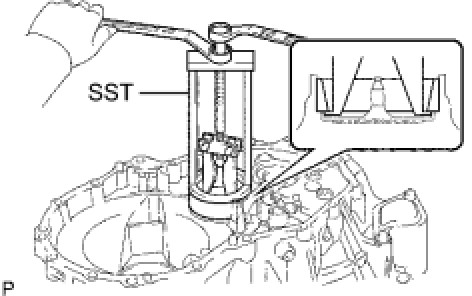 (a) Using SST, remove the input shaft front bearing (outer race) from the transaxle case.