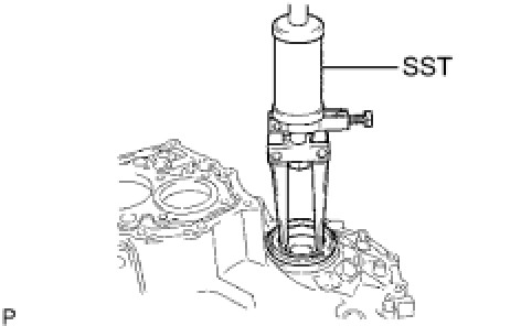 (a) Using SST, remove the oil seal from the transaxle case.