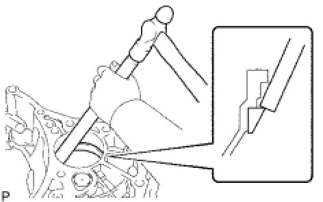 (a) Using a brass bar and hammer, tap out the front tapered roller bearing (outer race) from the transaxle case.