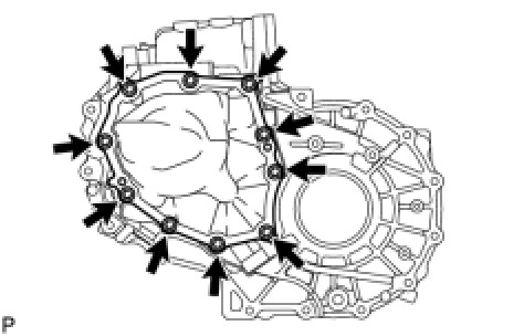 (a) Remove the 10 bolts and transaxle case cover from the transaxle case.