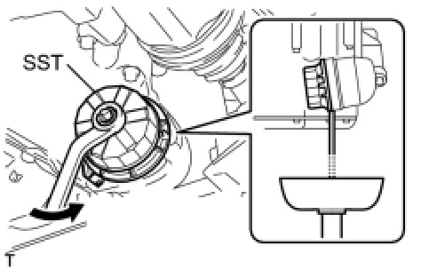 (a) Remove the oil pan drain plug and drain the engine oil.