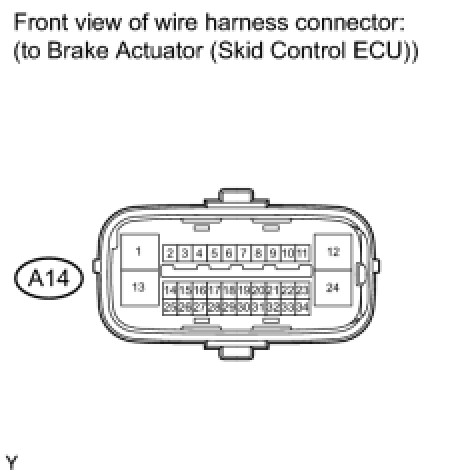 (a) Disconnect the A14 brake actuator (skid control ECU) connector.