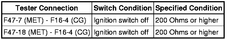- Before measuring the resistance, leave the vehicle as is for at least 1 minute and do not operate the ignition switch, any other switches or the doors. If doors need to be opened in order to check connectors, open the doors and leave them open.