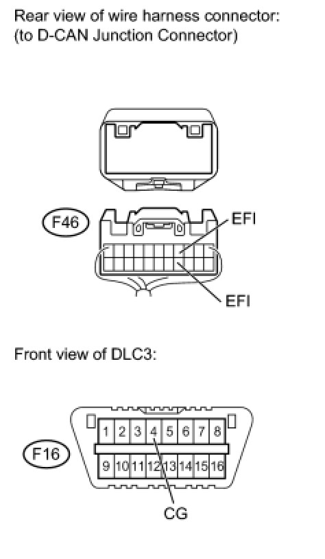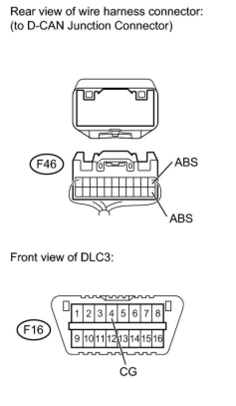 HINT: The resistance must be measured after the F46 D-CAN junction connector is disconnected.