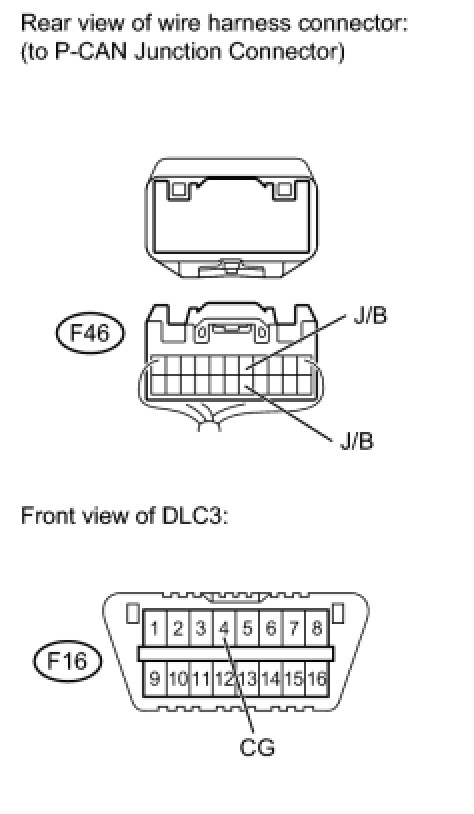HINT: The resistance must be measured after the F46 P-CAN junction connector is disconnected.