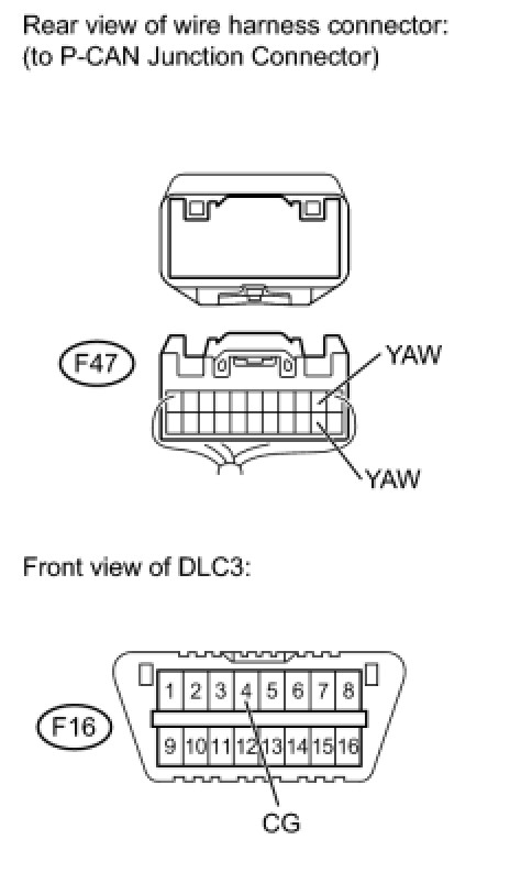HINT: The resistance must be measured after the F47 P-CAN junction connector is disconnected.