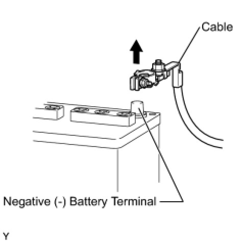(c) When the battery cable is disconnected, the clock and radio settings and stored DTCs are erased. Therefore, before disconnecting the battery cable, make a note of the settings.
