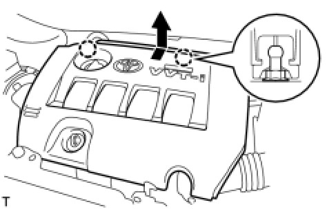 (a) First, lift up the rear of the No. 2 cylinder head cover to disengage the 2 fittings shown in the illustration.